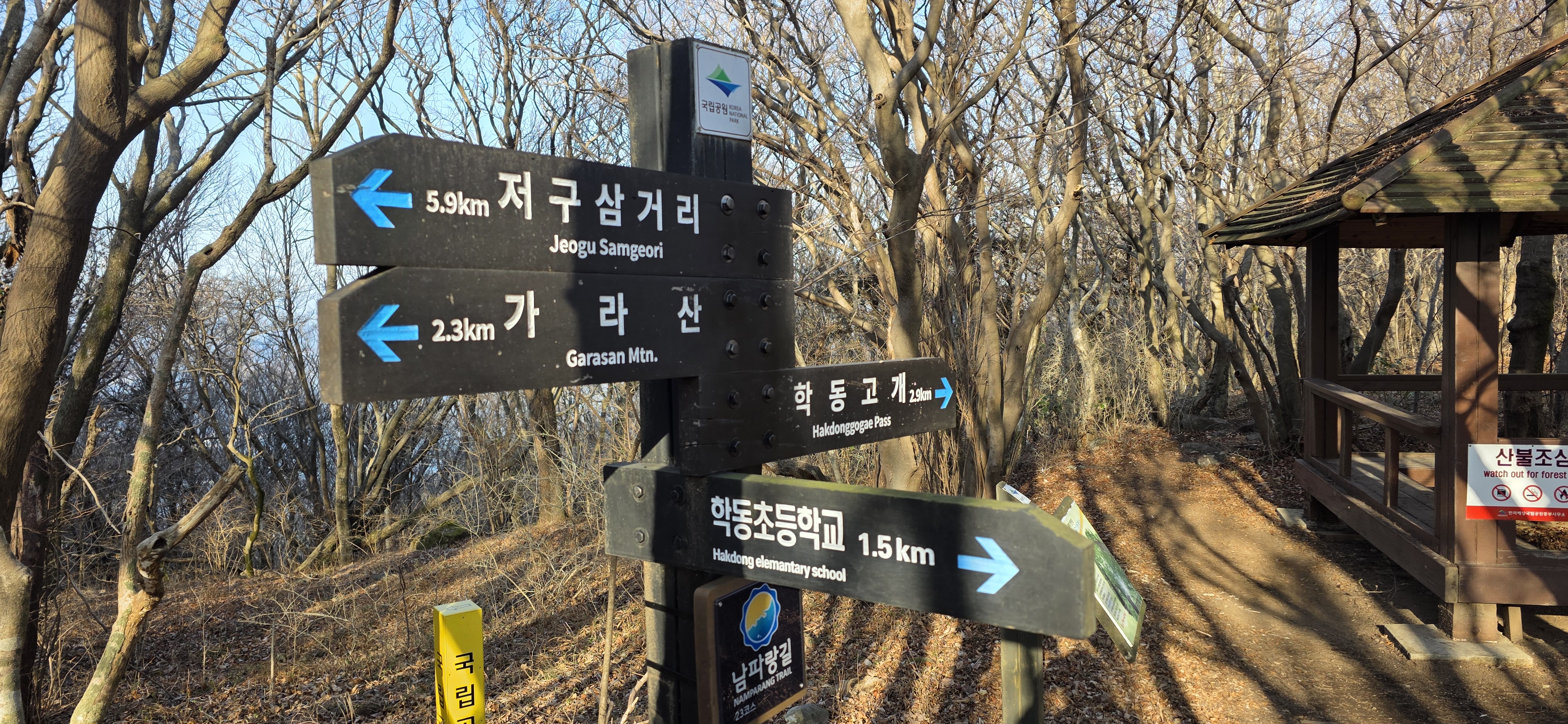 이곳에서 가라산을 들렀다가 학동고개 방향으로 진행하면 됨.