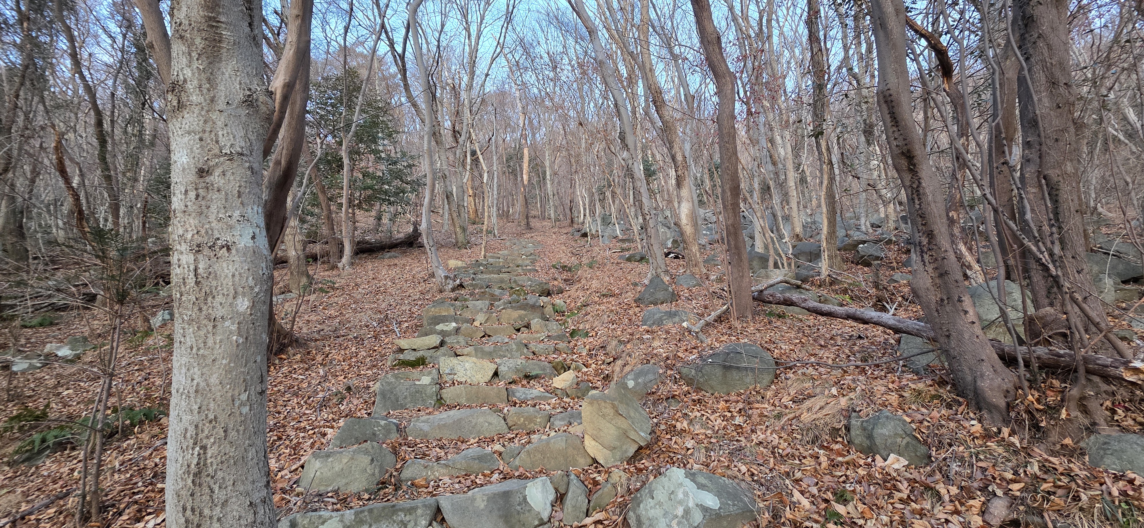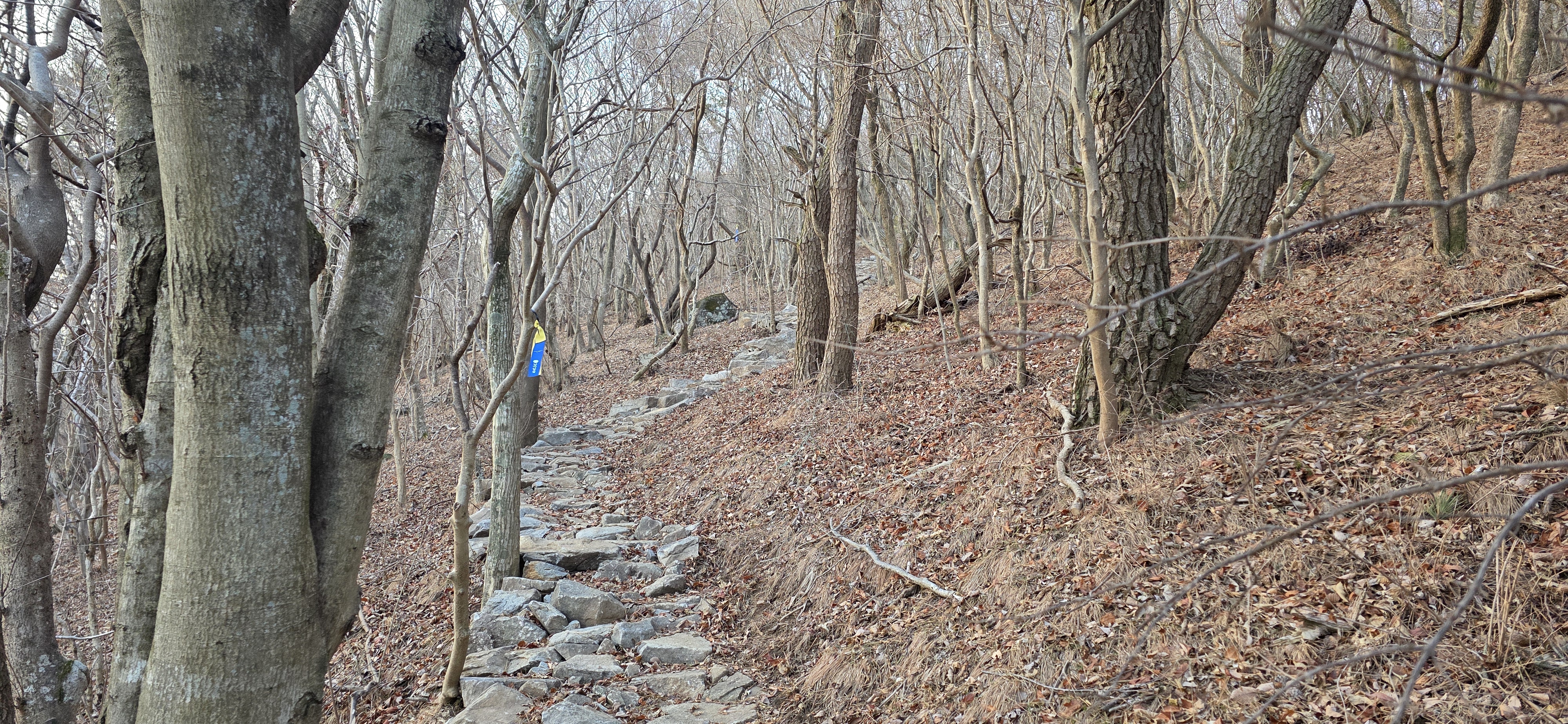 주능선길(가라산~노자산)을 만나기 전까지는 비탈을 올라야 하는 단조롭고 지루한 길임. 다행히 길지는 않음.