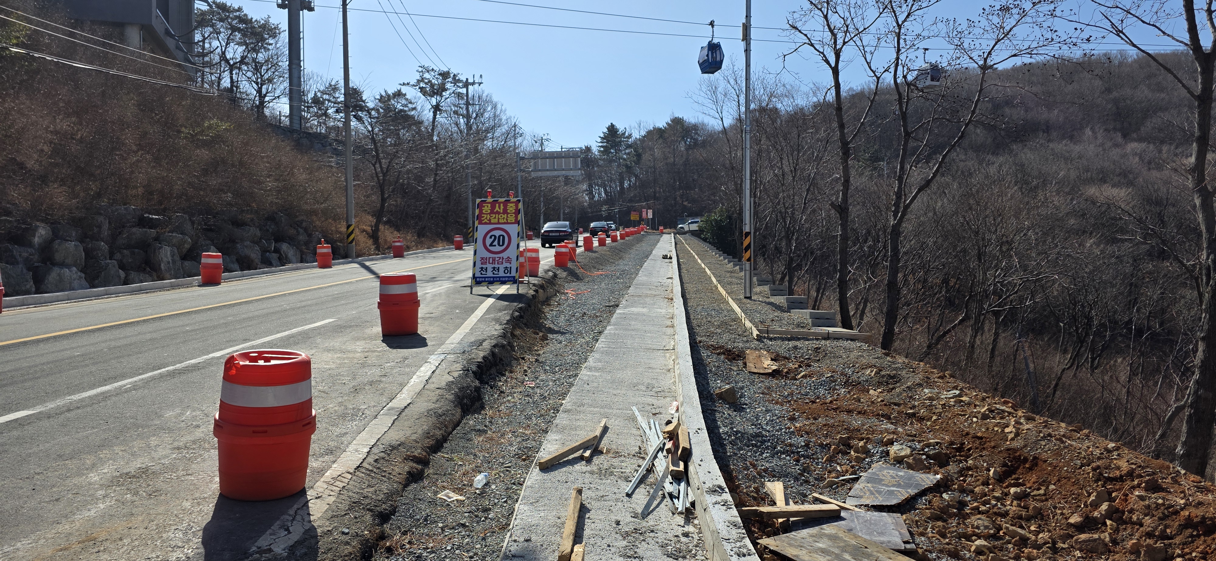 도로 공사 중이라 불편하고 위험함.