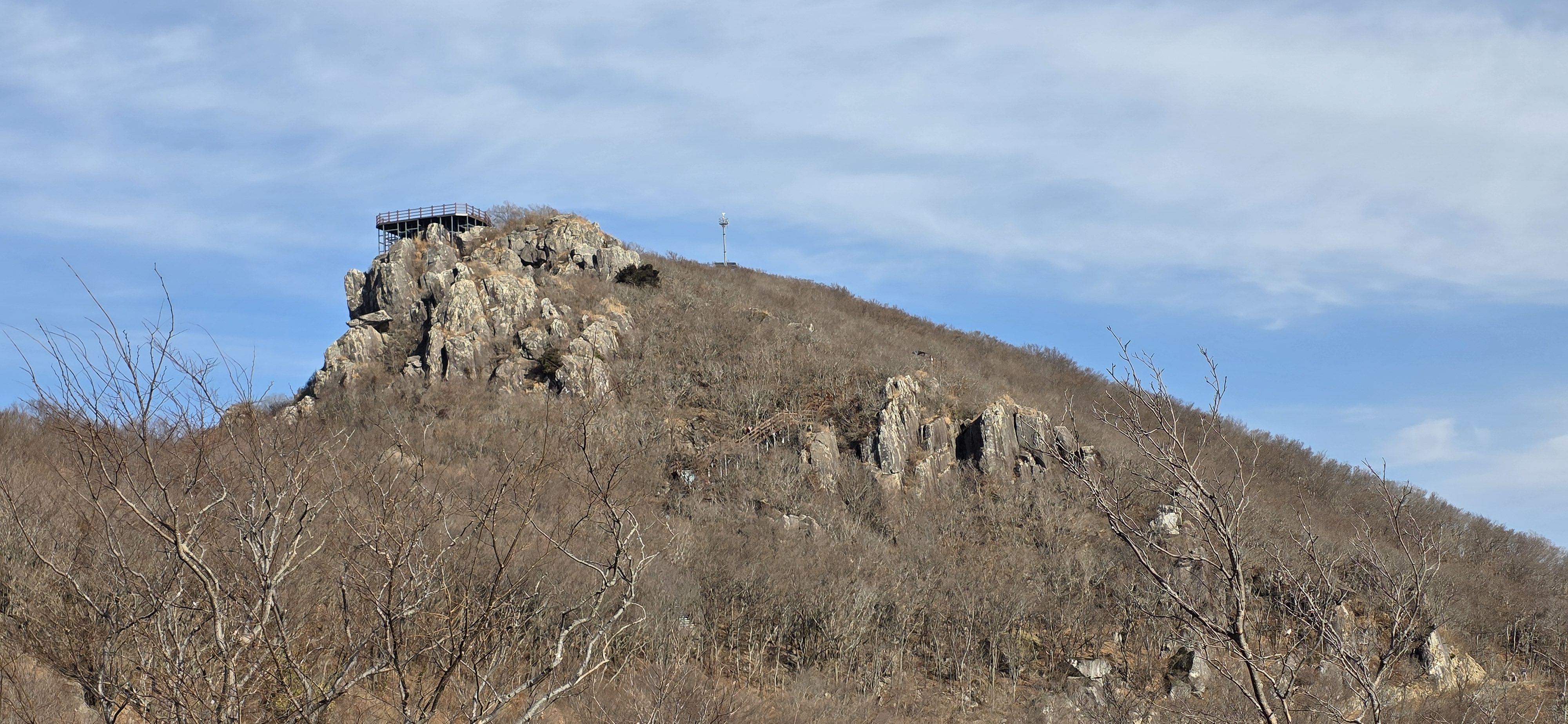 정상 아래쪽에 전망대가 하나 있고, 정상(뒤에 안테나 부분)에 전망대가 또 있음.