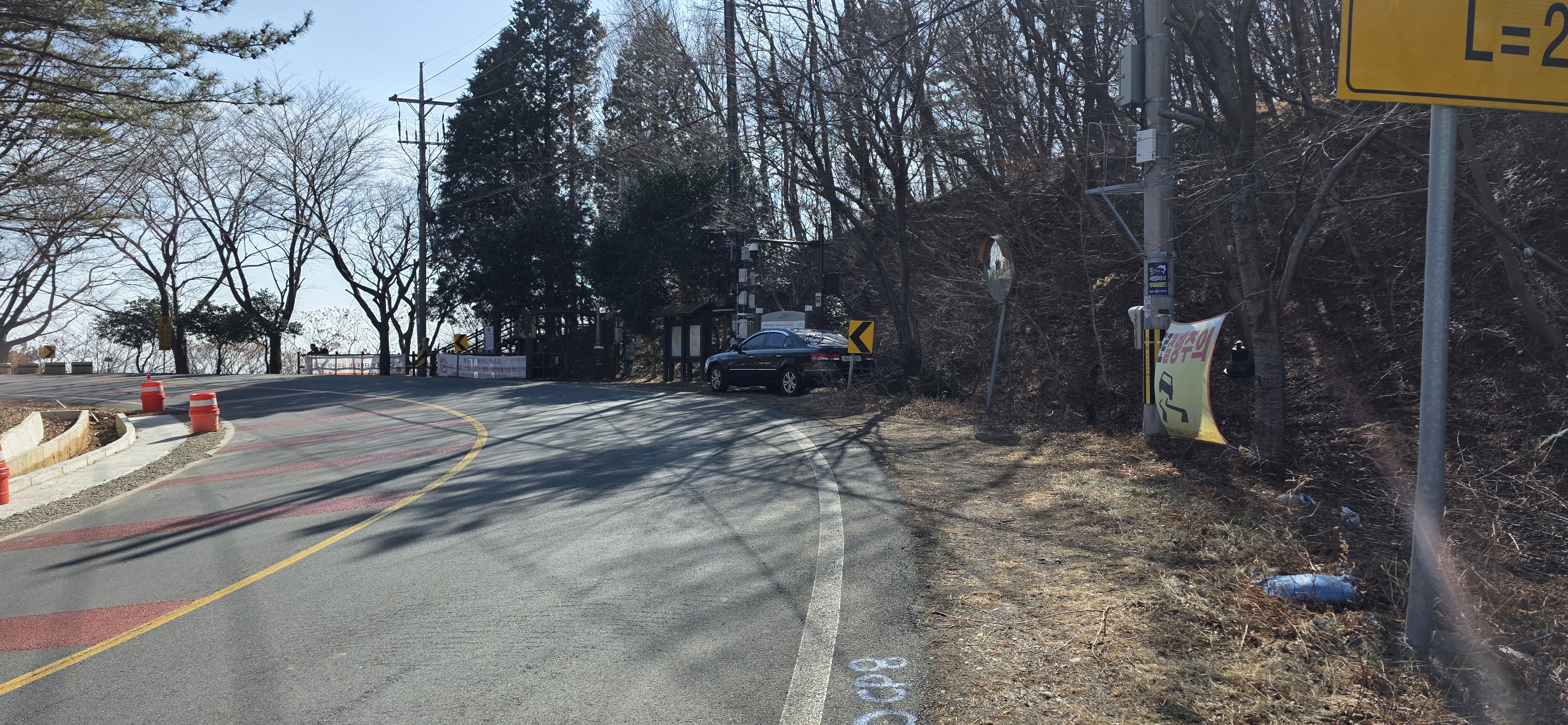 이제 도로를 따라 학동마을로 내려가면 되는데... 문제는 도로는 좁고 내리막 급경사이고 커브는 심하고... 게다가 차량 통행도 많음(케이블카 이용객)